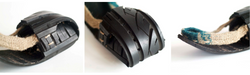 ![]() Through many design alterations and product testing the footwear was developed to reach a final design. There is minimal stitching ensuring the shoe is quick and easy to assemble, air holes on the top of the shoe to allow the feet to breath and a hemp strap at the back to keep the foot in place. | ![]() | ![]() The tread would be stripped off the tyre and the template, created from recyclable polypropylene, would be placed directly on the tyre piece. |